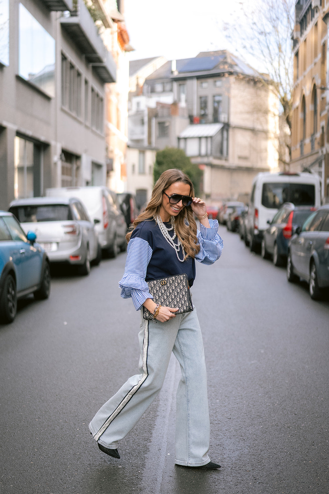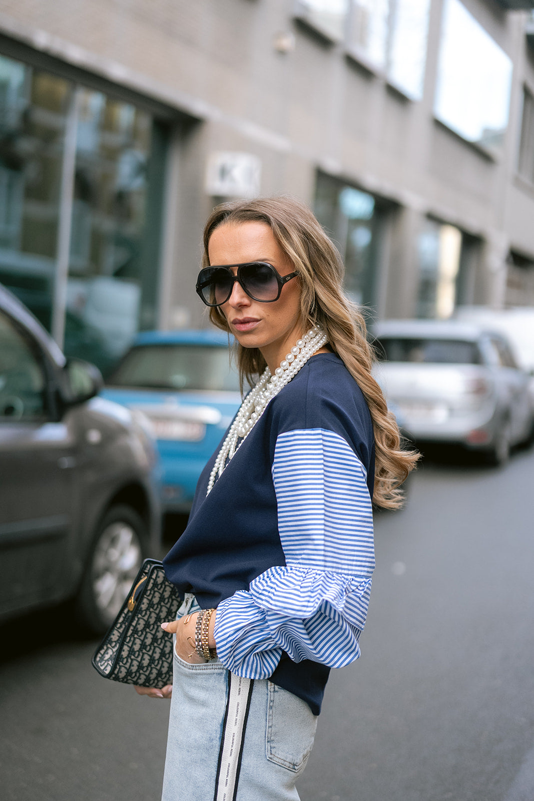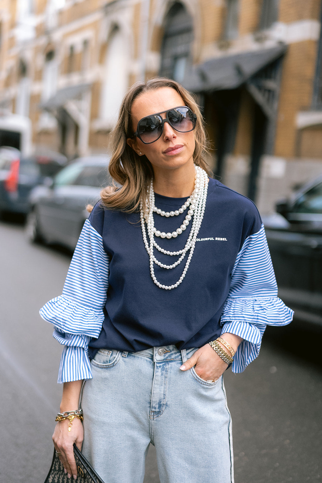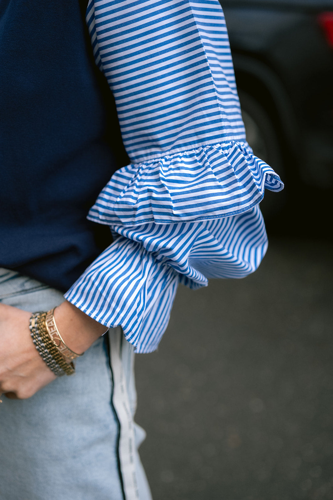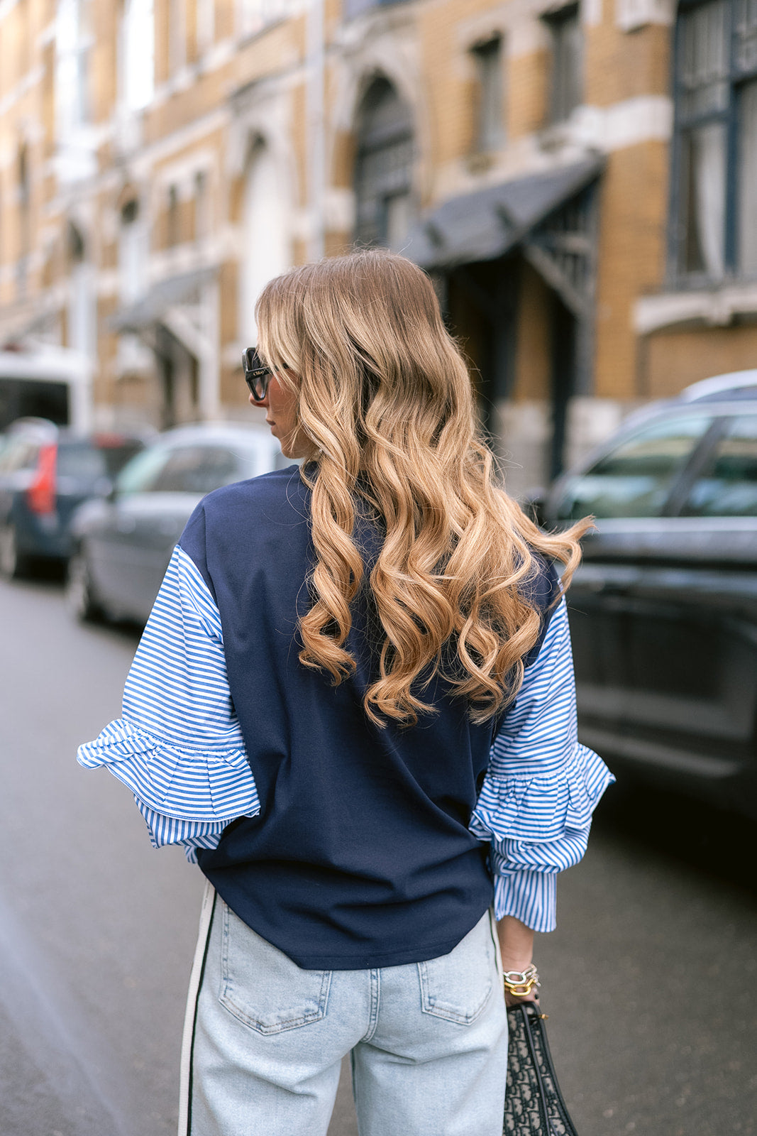 Basics, but make them interesting. The Yaz top has standout contrast sleeves in a crisp blue poplin with ruffle details. A crew neckline and fitted shape. She's your new go-to for work-to-weekend looks that don’t try too hard.