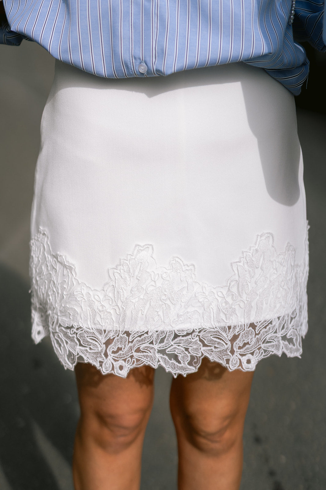 Flirty mini skirt finished with lace detailing along the hem. Available in multiple colors.
