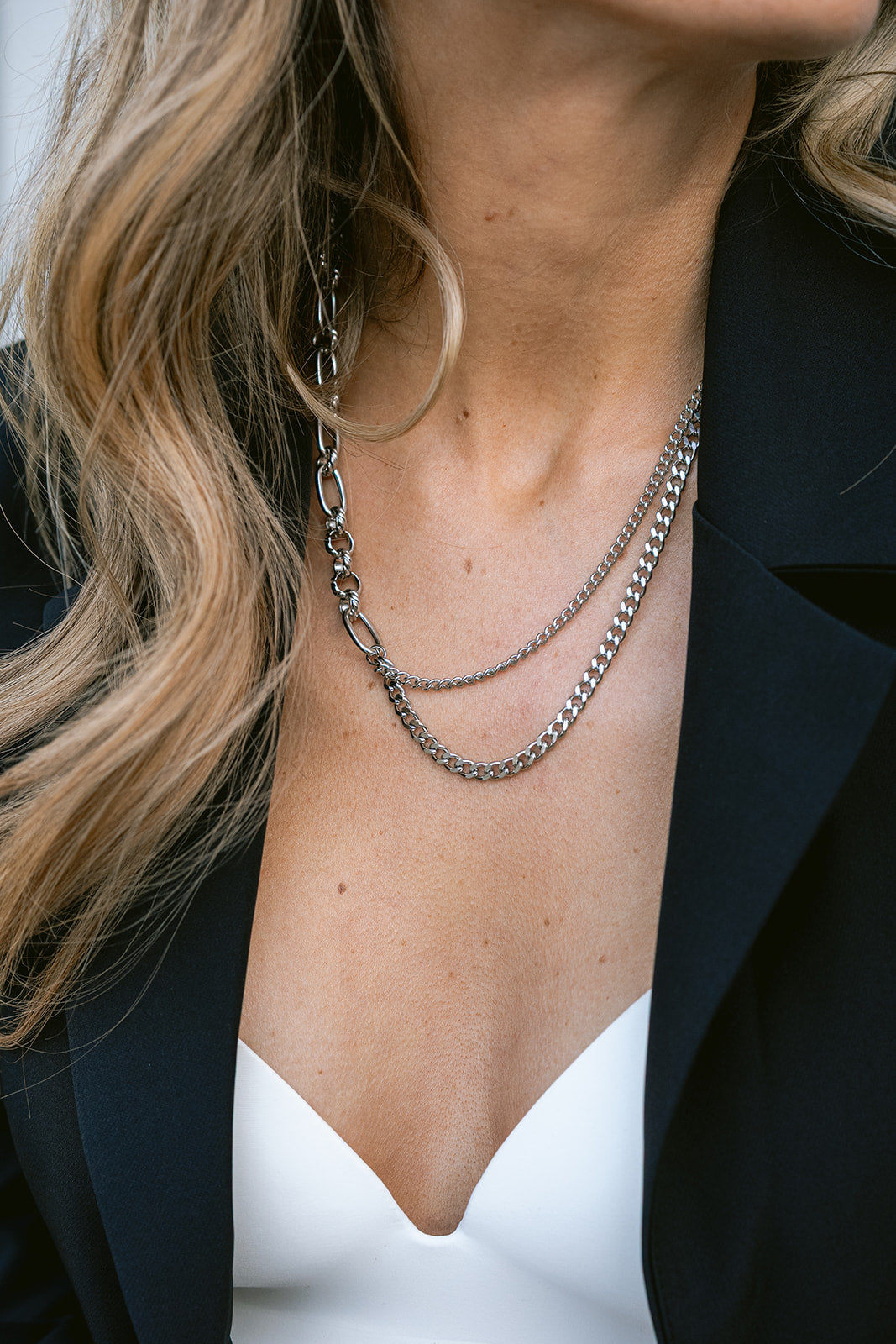 A timeless necklace with a refined layered design. The different links create subtle movement and give the piece a modern, elegant look. Designed to be effortlessly combined and elevate any outfit.