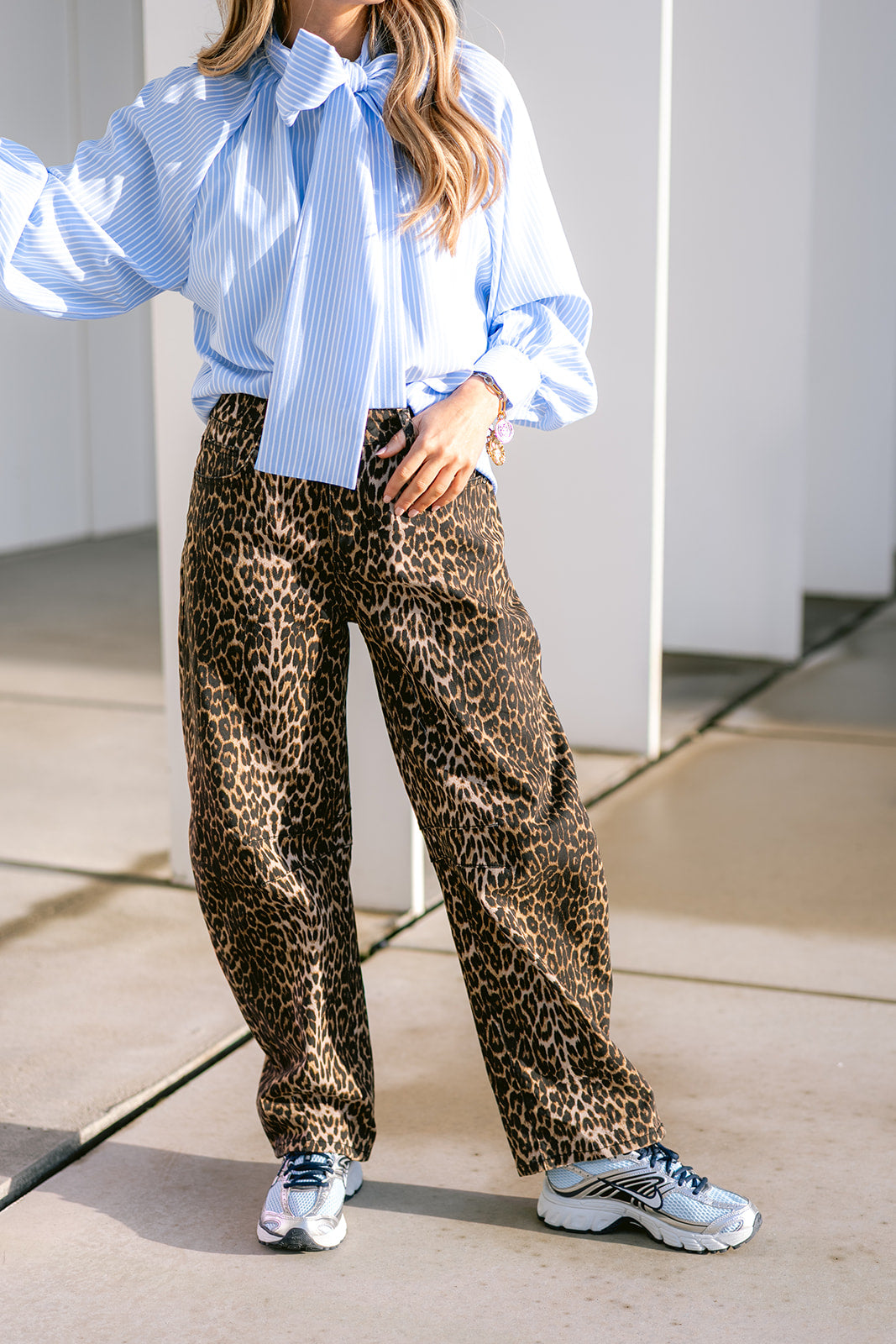 Unleash your wild side with the Lenz Trousers Leopard. These statement trousers have a bold leopard print that transforms classic denim into an eye-catching essential.
