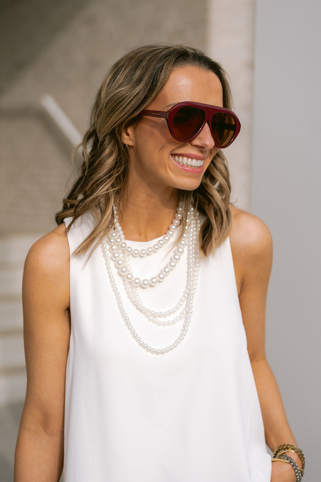 A stunning white sleeveless top with an elegant open back with a crossed drape design. The dramatic back detail creates a sophisticated silhouette perfect for special occasions or elevated everyday wear. The clean white fabric and minimalist front contrast beautifully with the intricate back styling.