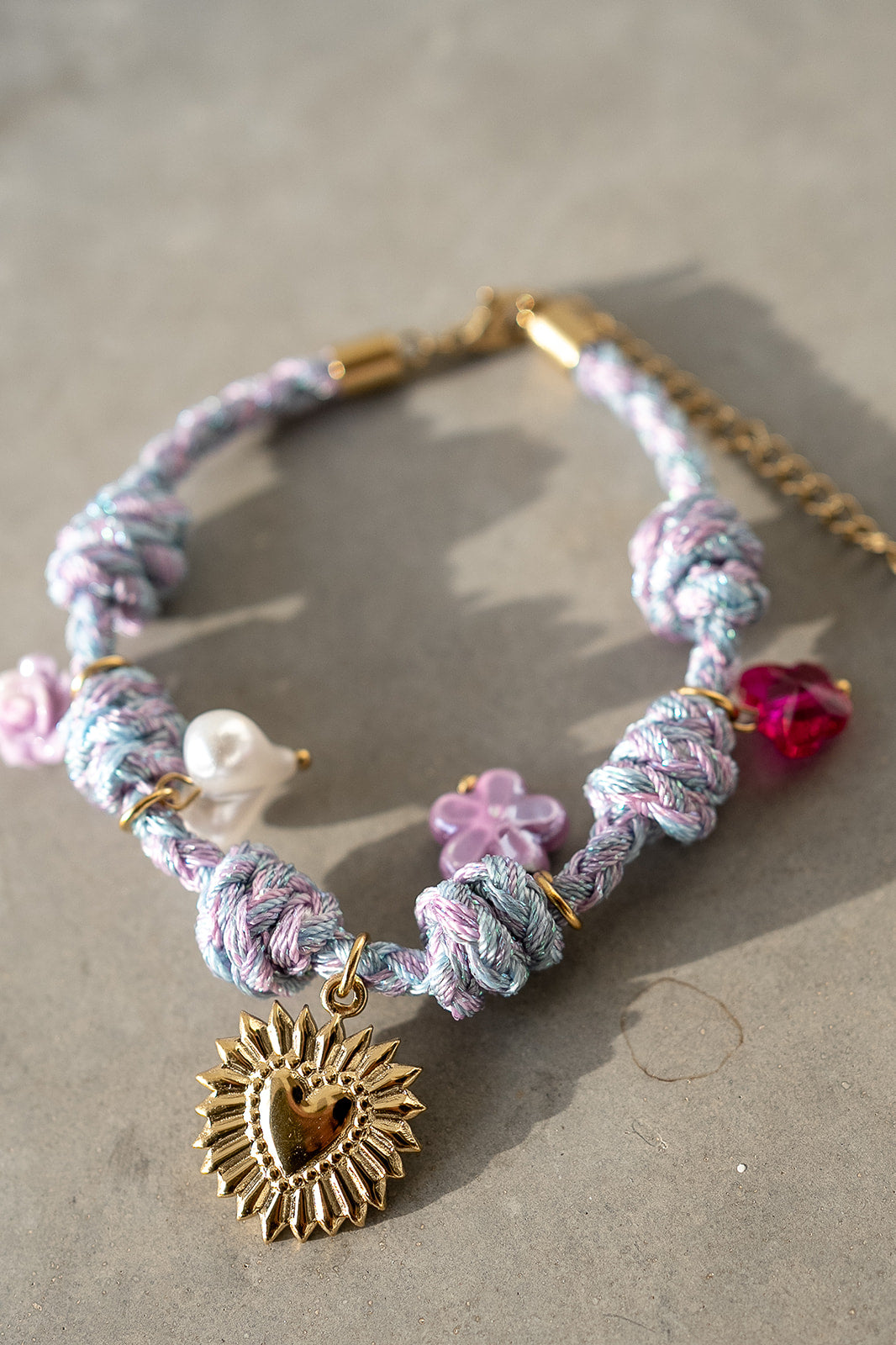 Slip on a splash of joy with this charming colored bracelet, detailed with golden and colored charms that catch the light beautifully.