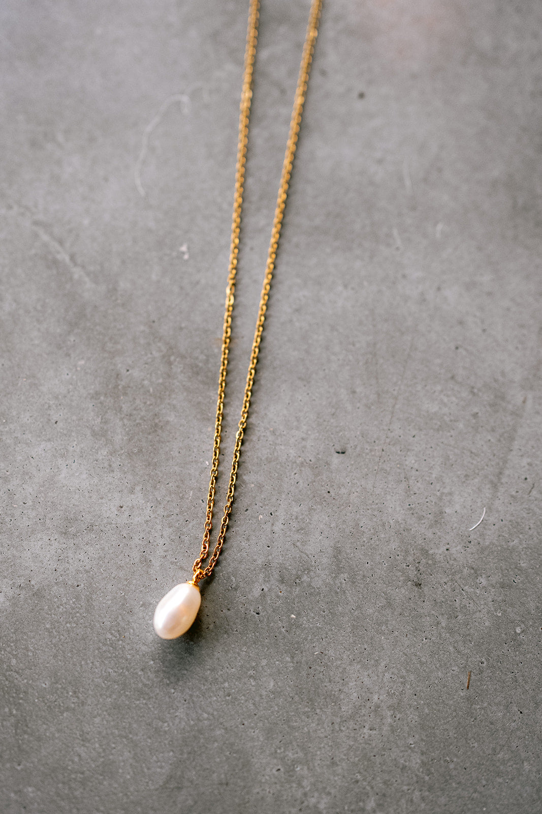 This delicate gold necklace is finished with a dreamy mother-of-pearl drop pendant that catches the light like fresh snow at golden hour. It’s dainty, elegant, and totally made for layering over satin tops or chunky knits. Whether you're gifting it or wearing it to your next soirée, it's giving soft sparkle and quiet luxury.