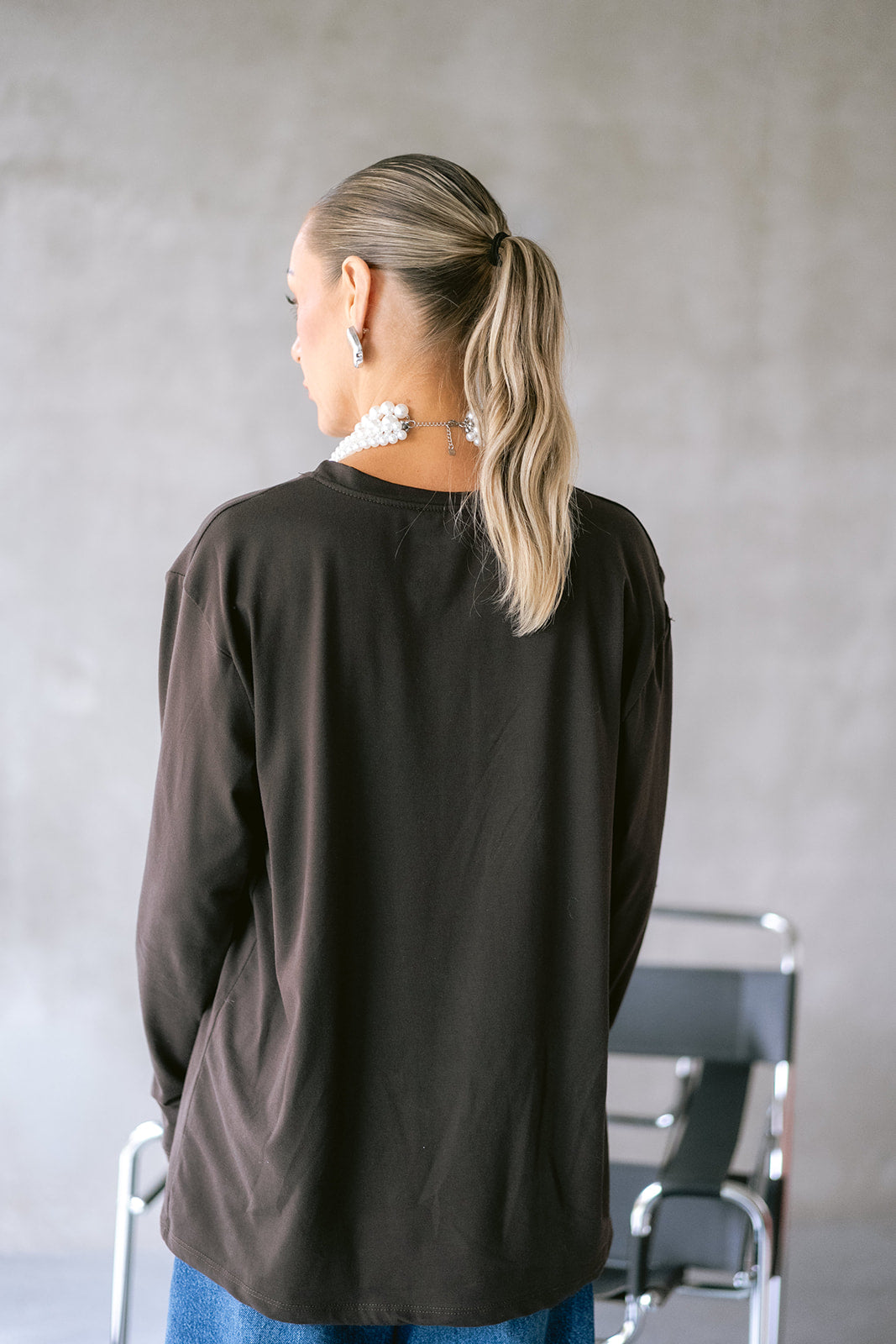 Your everyday tee. This one-size T-shirt comes with structured shoulder epaulettes for that subtle power move, perfect for dressing up or down all season. The relaxed fit keeps things comfy, while the bold shoulders add just the right edge.