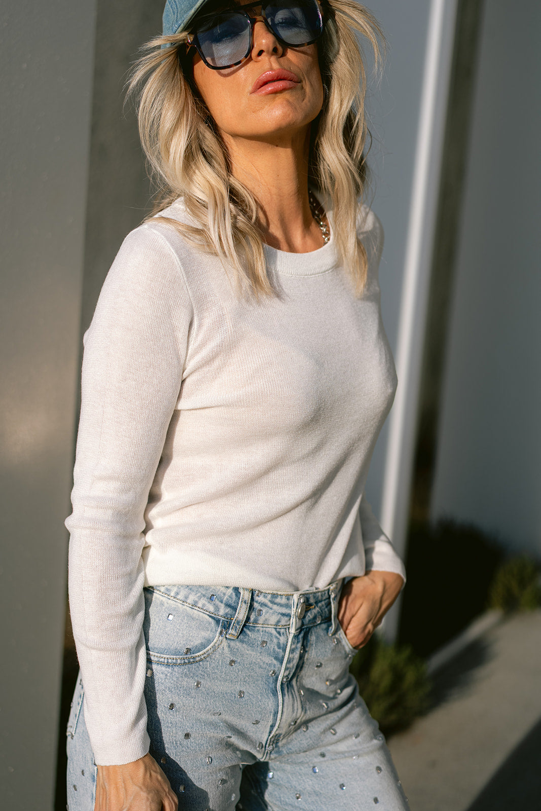 A cheerful everyday essential with a timeless round neckline and cozy long sleeves. Perfect for layering or wearing solo, this t-shirt brings effortless style to your casual wardrobe. Simple, comfortable, and endlessly versatile.