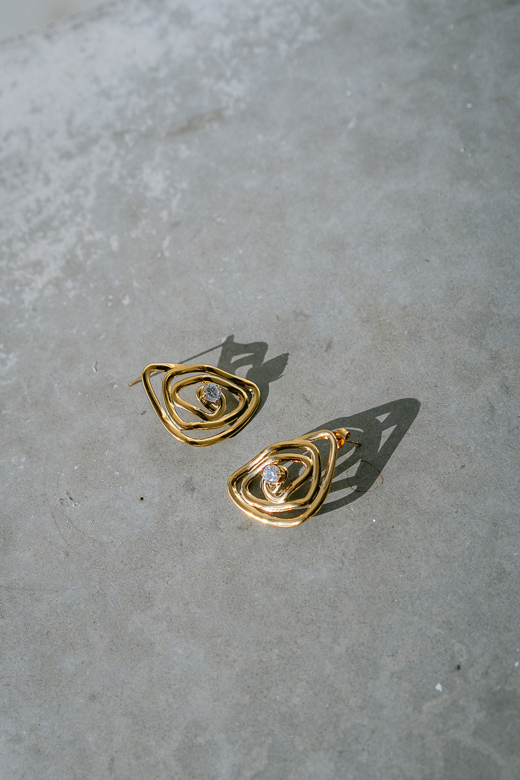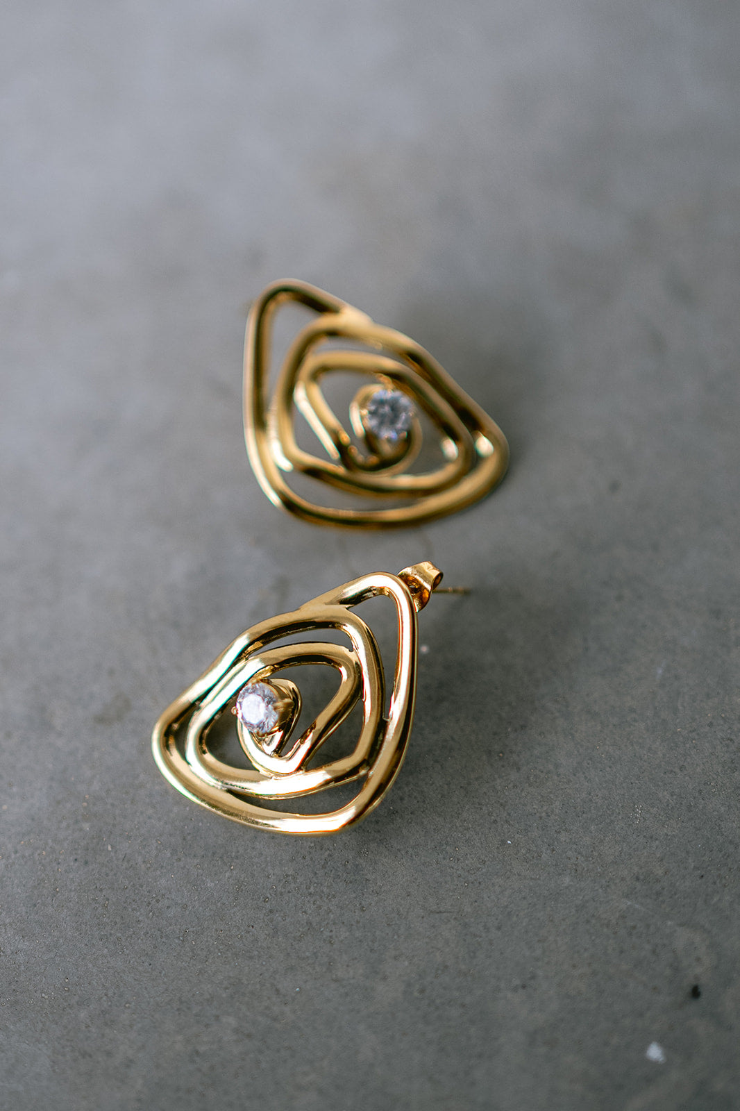 Twirl into elegance with these gleaming spiral earrings, where contemporary design meets timeless sparkle. Made from stainless steel in a radiant gold finish, each piece has a mesmerizing gemstone centerpiece that catches the light beautifully.