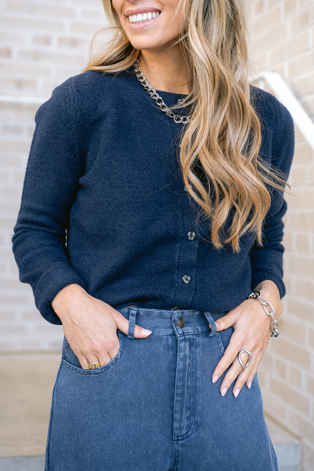 Soft days call for the Chloe Cardigan. It’s cut in an elegant fit with button-down front, and cozy ribbed trims.