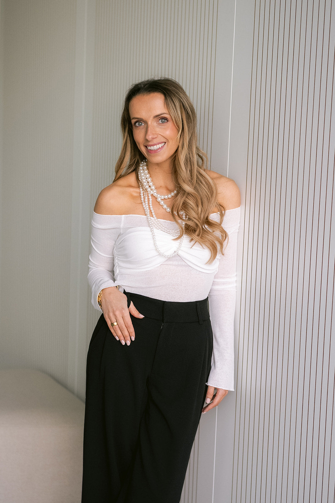 Tailored wide-leg trousers with a button-accented waistband. The relaxed silhouette has a timeless appeal, perfect for the office or dressed occasions.