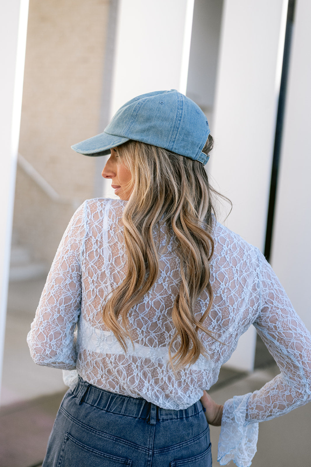 Soft girl energy, but make it spicy. The Jasper lace top has a sheer lace body, long sleeves with ruffle details, and a close, comfy fit. Perfect with wide-leg jeans for brunch or under a blazer on date night.