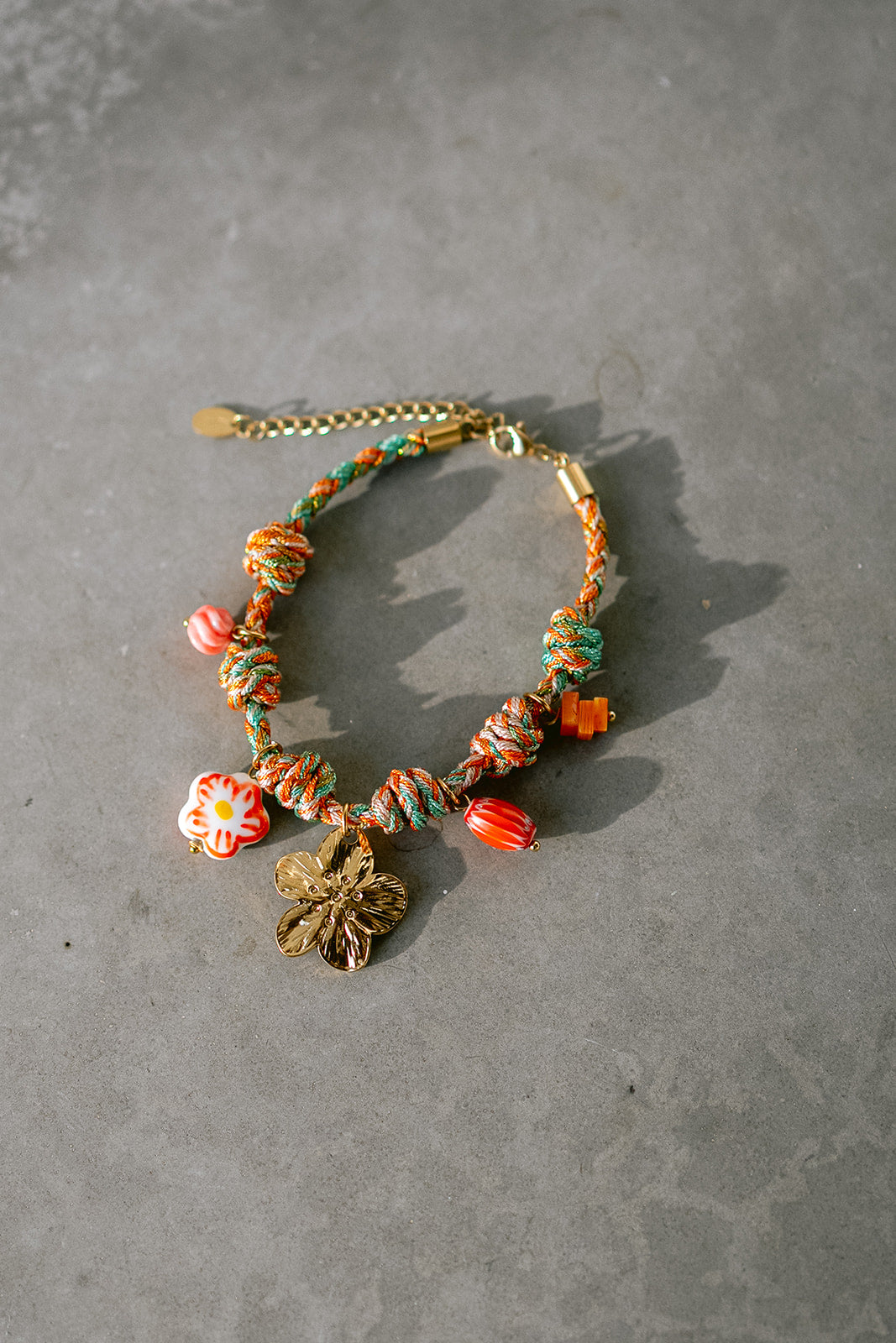 Slip on a splash of joy with this charming colored bracelet, detailed with golden and colored charms that catch the light beautifully.