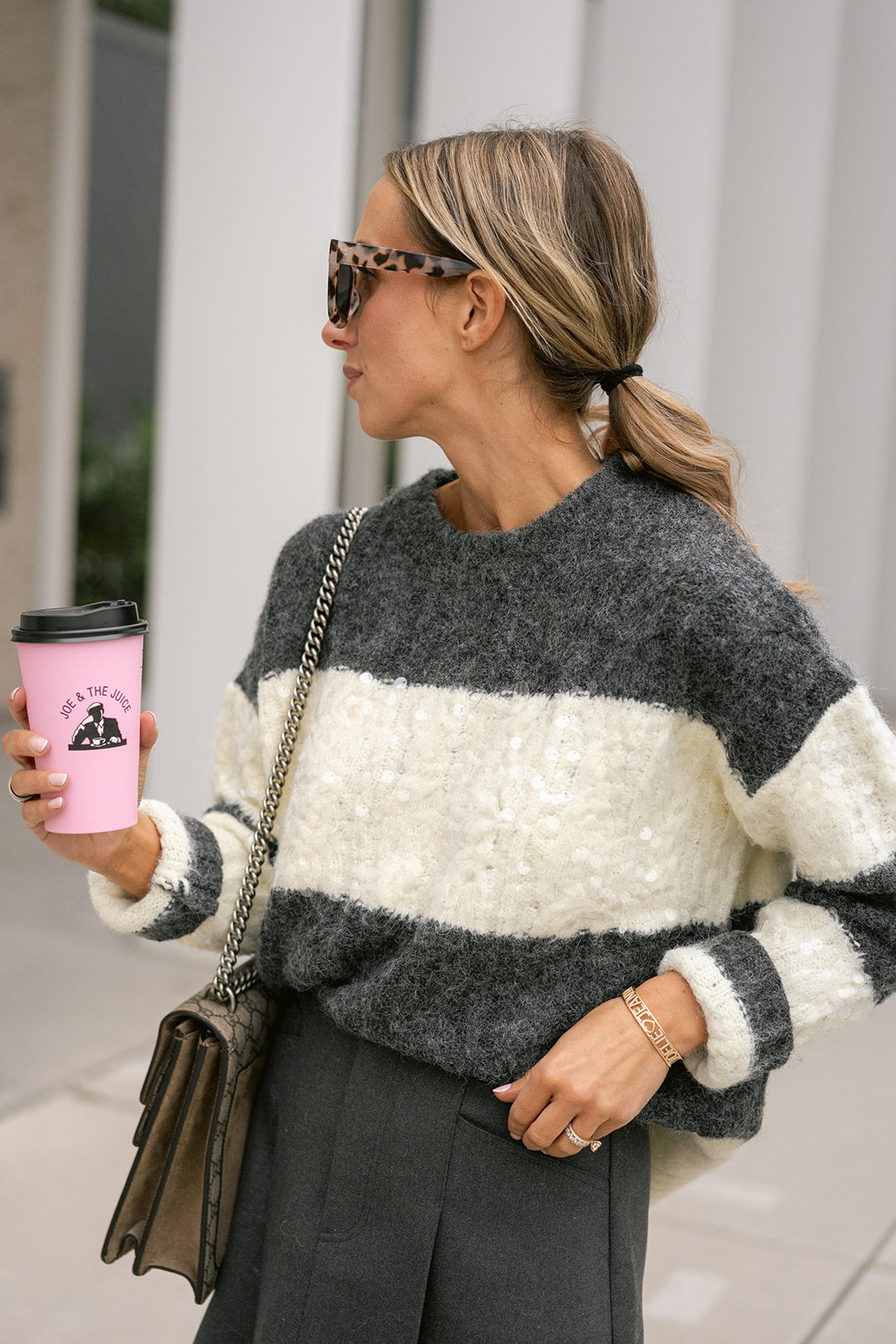 Selera is our super soft knit sweater with a big horizontal striped pattern, round neck and long sleeves. Impossible to not love her.