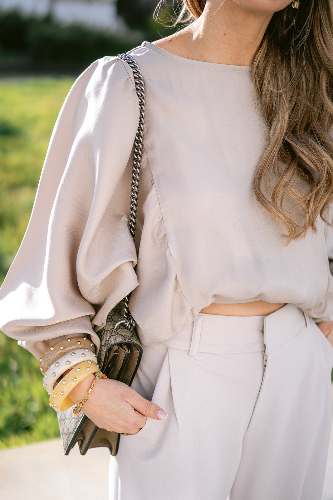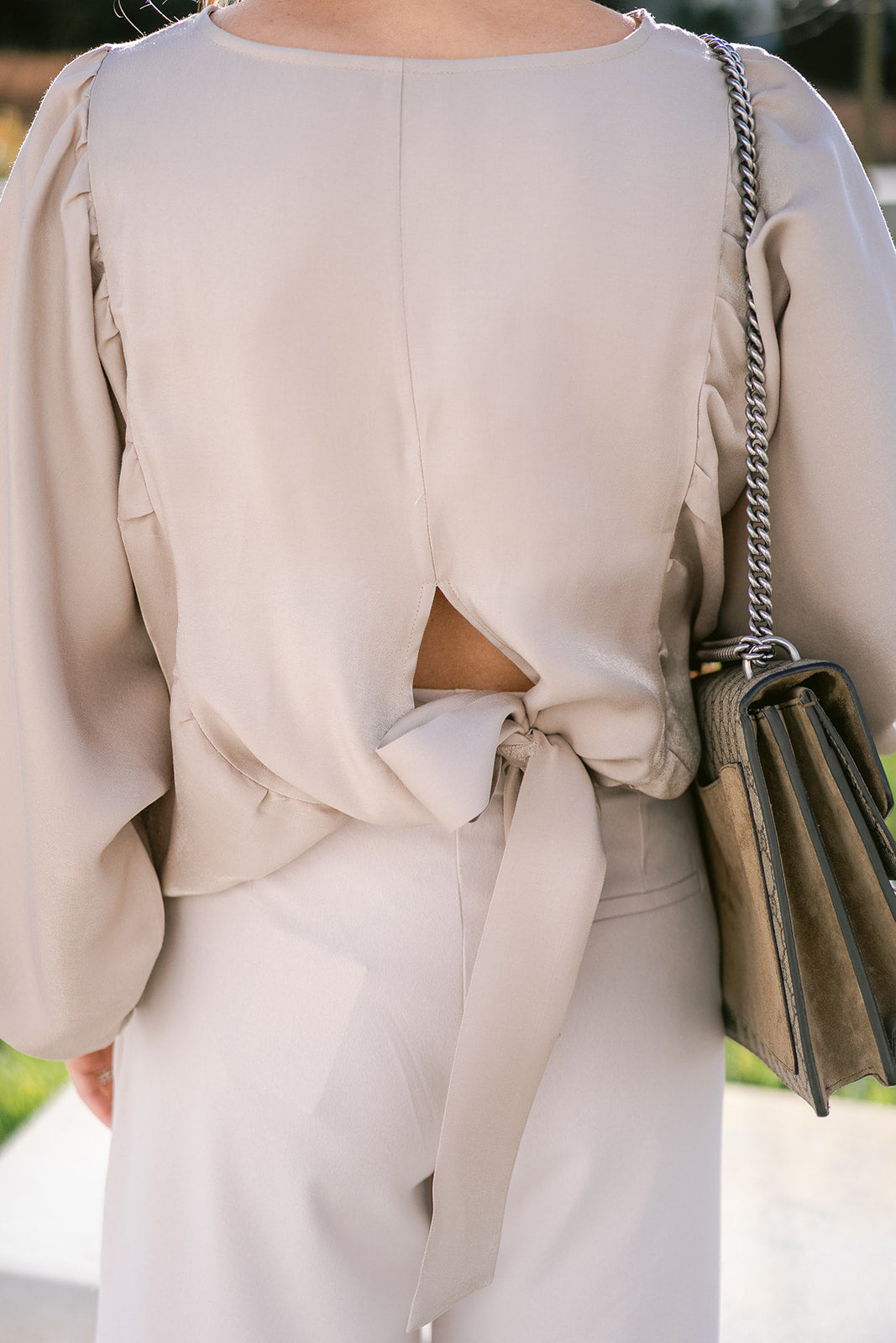 Long and soft balloon sleeves, a round neckline and a falls beautifully on the waist. Style with denim or tailored bottoms when you’re feeling fun and flirty.